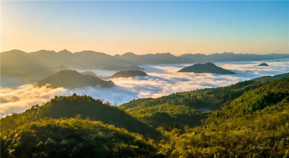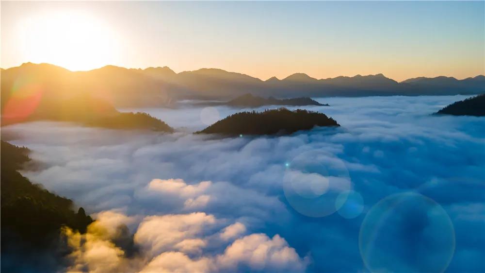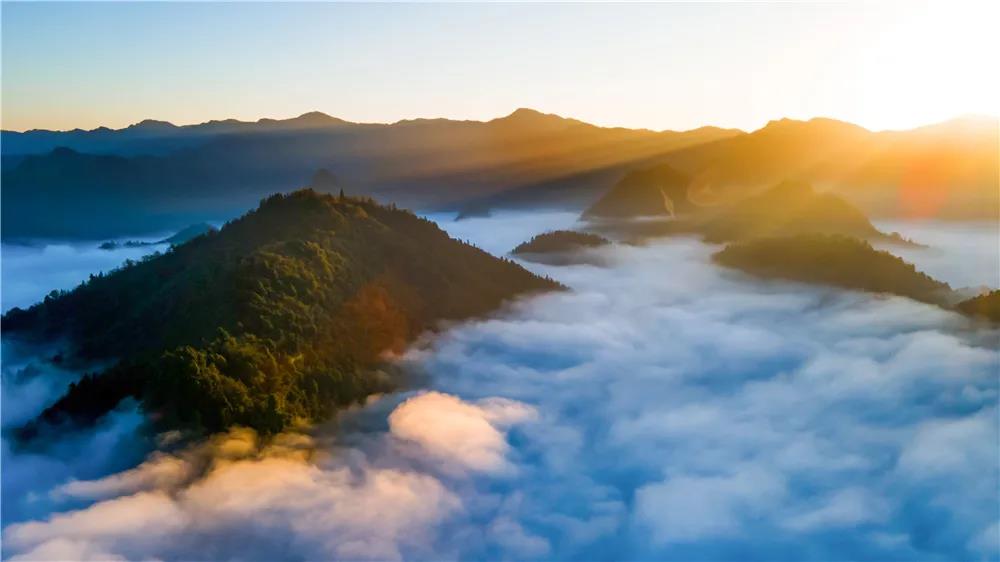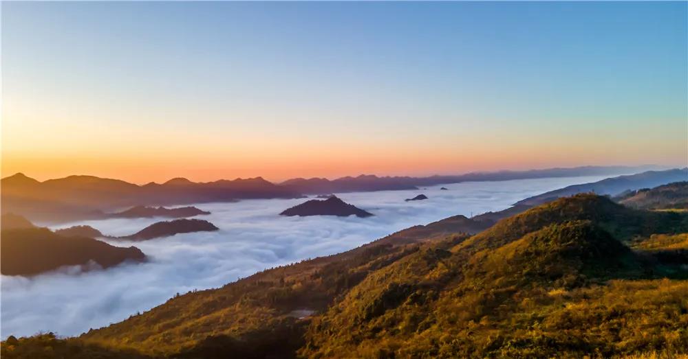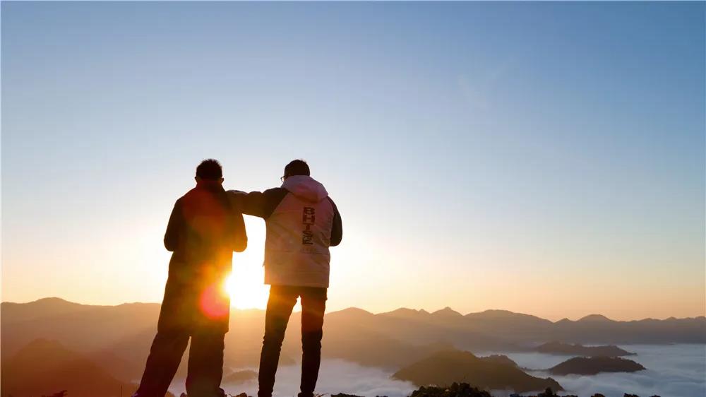 静静的等一场日出,红色的霞光从山尖漫溢出来,流云奔涌,群山浮动,滚滚的云流翻山而过,似海浪一般翻滚着、碰撞着、拥挤着,气势磅礴、宏伟壮观。